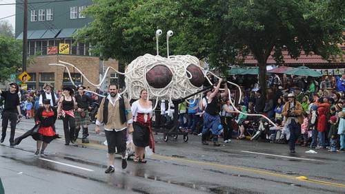 Эту кощунственную заразу придумал человек по имени Бобби Хендерсон. Он был закоренелым атеистом и поэтому очень возмутился, когда ему сообщили, что департамент образования штата Канзас принял решение ввести в школьный курс теорию «Разумного замысла». Получается, детям Хендерсона будут объяснять на уроках о божественном сотворении, о заповедях «не укради», «не убий» и о прочих христианских премудростях.